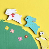うさぎが飛びはねているようなシンプルな形です。ついつい白やピンクに塗りたくなりますが、カラフルな色や水玉やお花柄などにしてもかわいいと思いますよ。生命の復活と繁栄を祝うイースターのシンボルとなっている、たまごとうさぎ。イースターイベントでは、たまごのバッジと合わせてお使いいただくのがおすすめです。