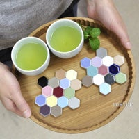 コルクシートにかわいいハニカムタイルを貼るだけで、コースターが作れます。タイルは、ランダムにいろいろな色が入っていますので、組み合わせをお楽しみ下さい。