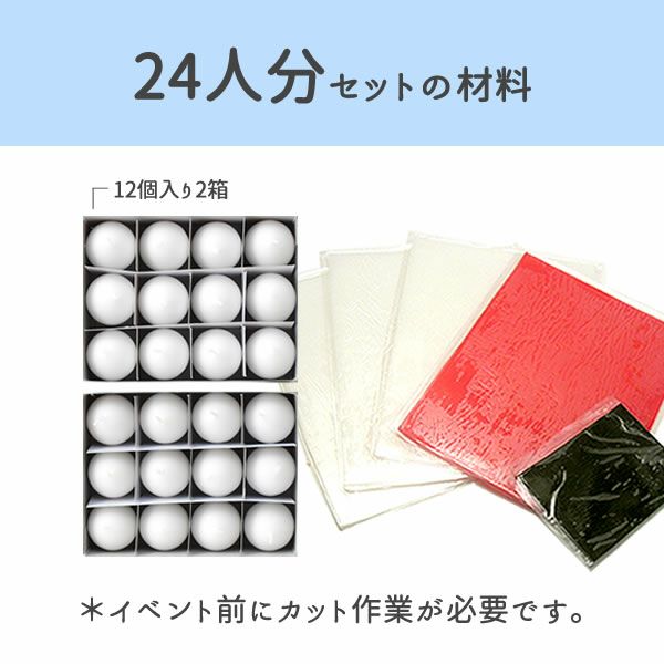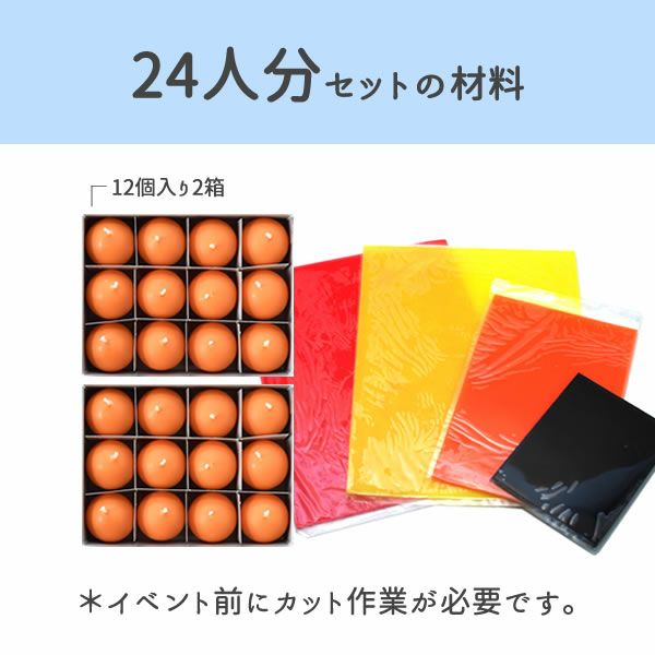 体温でやわらかくなるロウ(カラーシート)を、粘土のように自由に形を整えて、ベースの丸いキャンドルに貼り付けるだけの簡単手作りキャンドルです。