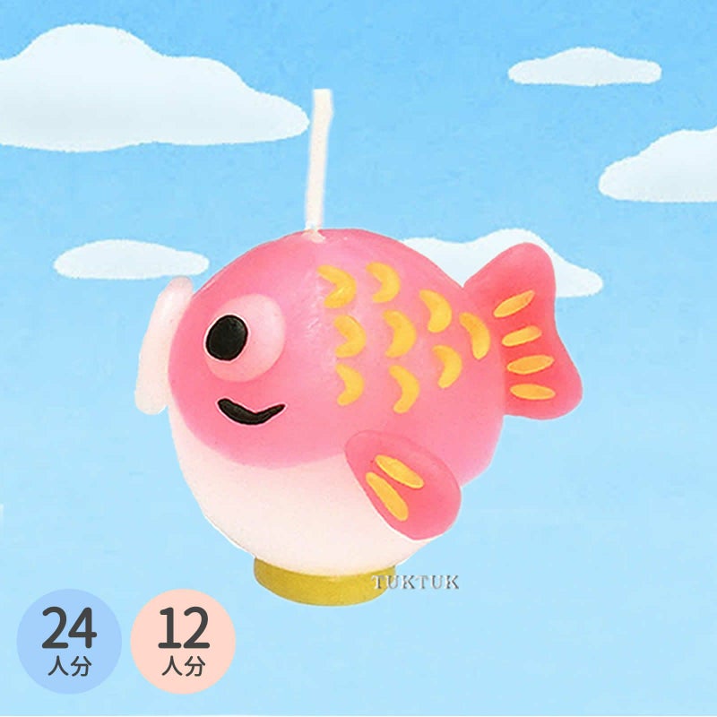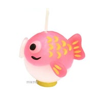 ピンクのシートを伸ばすように貼り付けていき、こいのぼりの体を作ります。しっぽの形に整えたパーツをキャンドルにぎゅっとくっつけて、魚の形にします。後は、白と黒のシートで目や口、ひげを作り、黄色のシートで飾り付けをします。キャンドルが転がらないように、残りの黄色のシートでわっかを作って乗せれば、完成!ポイントは、目を大きめに作って、こいのぼりらしい模様にすることです。