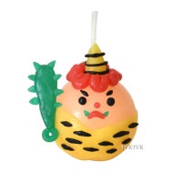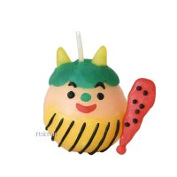 黄色のシートを伸ばすようにキャンドルに貼り付けていき、服を作ります。ツノは1本の場合は芯に巻き付けて作ると、バランスよくなります。黒のシートで、服とツノに模様を付けます。次に、赤か緑のシートで髪の毛を作り、まゆげ・目・鼻・口などのパーツを付けていきます。残った赤か緑のシートでこん棒を作れば、完成!