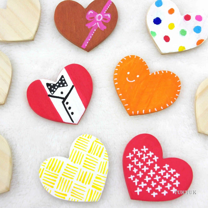 シンプルなハートの形なので、赤やピンク一色に塗るだけでもかわいいですが、模様を描いたり、ハートのチョコに見立ててデコレーションしたり、自由な発想で、かわいいハートに仕上げてくださいね。メッセージを書いて、プレゼントに添えるのもかわいいと思います。バレンタインイベントにおすすめです。