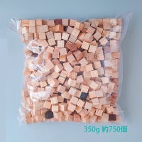 寄木細工ブローチ、一輪挿し等に利用している木のブロックです。通常イベント用に7500個の大袋で販売していますが、個人的に何かを作ったり、貼り付けたりするには多すぎる。ということで少量で使いやすいミニパックにしました。約750個入っています。手持ちの箱やフレームに貼り付けて、デコレーションするのもいいですし、ブロック同士を貼り付けて、ドット絵みたいなものを作るのもおすすめです。