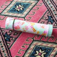 3枚の鏡と紙筒でかんたんに作れる万華鏡。キットにはマスキングテープと万華鏡の中身のパーツとしてセロファンやモール、おはじき、花のスパンコールが付いています。