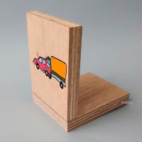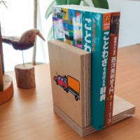 合板とナットだけで作るとってもシンプルな本立て。組立てに必要なものはボンドだけです。時間も5分とかかりません。実際に本を置けるようになるのは、ボンドが完全に乾いてから(約1日)です。シンプルすぎて、いったいこれはなに?!って見た目ですが、あるとすごく便利な本立てです。縁の下の力持ちならぬ、本の下のナットがいい仕事をします。このナットのちょっとした傾きで本が倒れないんです。