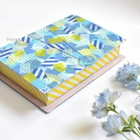 本型なので、本棚にこっそり隠しておきたい宝物や日常使いの文房具、卒園・卒業の思い出の品など、好きなものを入れてくださいね。ふたが開かないように、ヘアゴムで留めたり、リボンをはさんで仕上げたり、一工夫すると、ぐっと完成度が上がりますよ。
