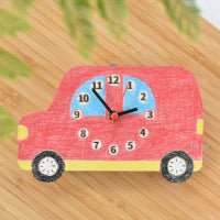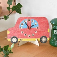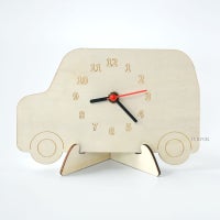 壁掛けにもスタンドにもできる車型の木製時計キット。数字はレーザー印刷済み、単3電池付き。色を塗るだけで完成します。父の日のプレゼントにおすすめ。