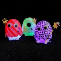 7色に光るライトにマスキングテープをミイラみたいに貼り付けて、動く目玉、星のスティックとモチーフを貼り付けたらモンスターの完成です。