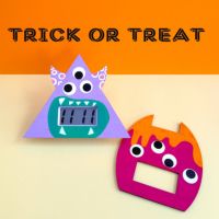 まずモンスターのフレームに色を塗ります。乾いたら目玉のシールを貼り付けます。窓の部分から時計の液晶画面が見えるように両面テープで貼り付けたら完成です。
