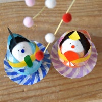 発泡スチロールの玉にマスキングテープを自由に貼って作る、"たまごみたいなおひなさま"です。