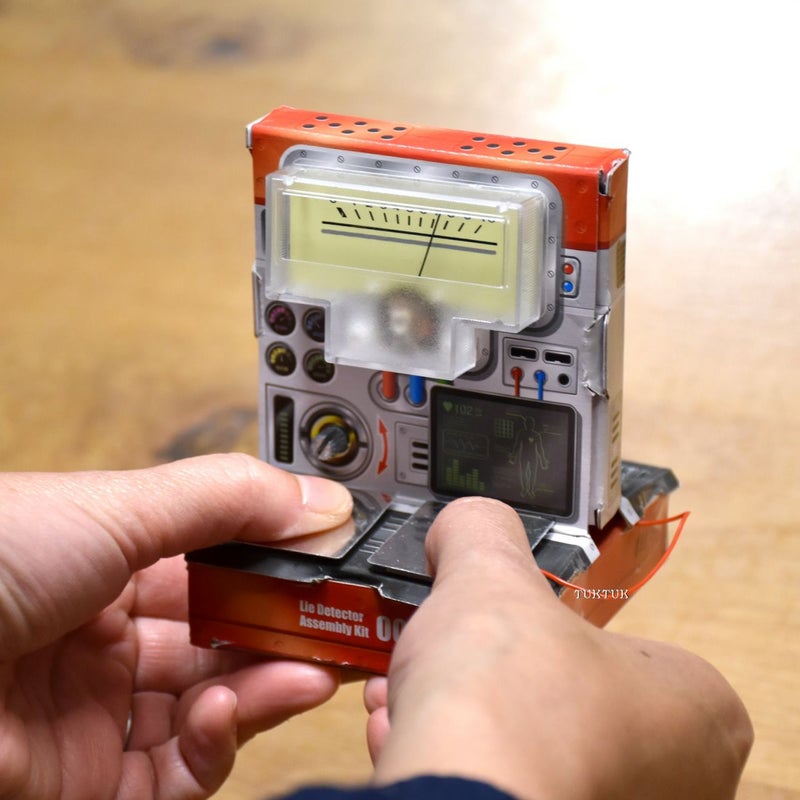 これ自体で、本当にうそが発見できる!というわけではないのですが、手指に汗をかくことで、電気が通りやすくなり、針が振れるという仕組みになっています。