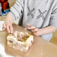 15㎜は手に持って貼り付けやすいサイズです。机や椅子、おうち、人、キリン、ペン立て、オブジェなど、大きめのものを作りやすいので、ウッドブロック単体でイベントする場合は、10㎜より15㎜の方がおすすめです。