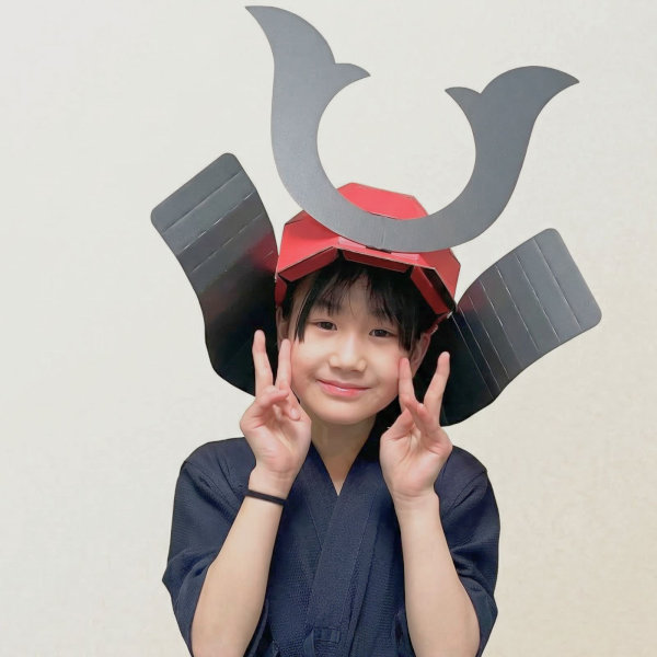 かぶとのつのみたいになっている部分は、同封の紙を切って貼ることで、金色にすることが出来ます。