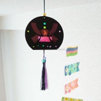 吊るしライトは軽いので、画鋲やマスキングテープで間単に吊るせます。今年は忙しくて、兜飾りやこいのぼりを飾れない…なんて時にもこれを飾れば、端午の節句の雰囲気を感じることができますよ。