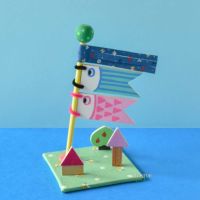 こいのぼりや他のパーツに色を塗ったり、布を貼ったりします。ポールにモールでこいのぼりを巻きつけます。ベースにこいのぼりやその他のパーツを飾り付けて、ボンドで固定すれば、完成!