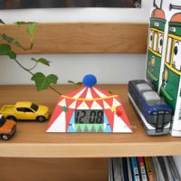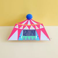 MDF(木質ボード)で作ったサーカスのテント型フレームで時計をデコるキットです。