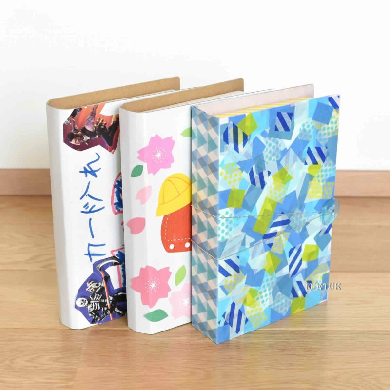 毎年増えていく年賀状の収納におすすめ、ダンボールで作る本型小物入れです。