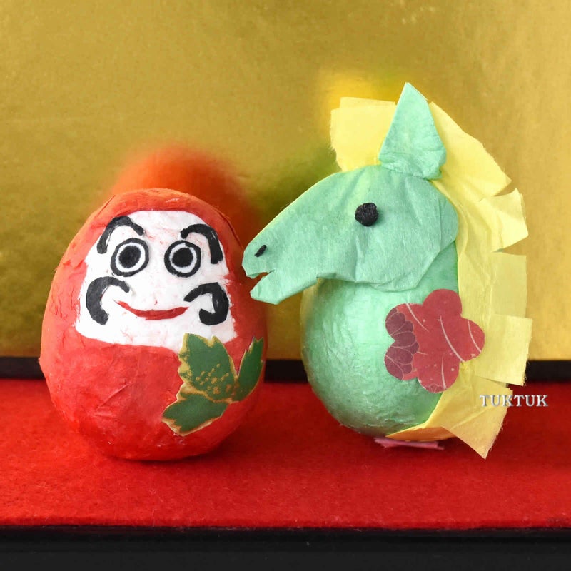何度倒しても、すぐに簡単に起き上がる、とても縁起の良いおきあがりこぼしを干支の工作キットにしました。たまご型のかわいらしい形で、ちょっと触るとゆらゆら揺れたり、倒れたかと思ったら起き上がったり、その姿はとても愛嬌があります。