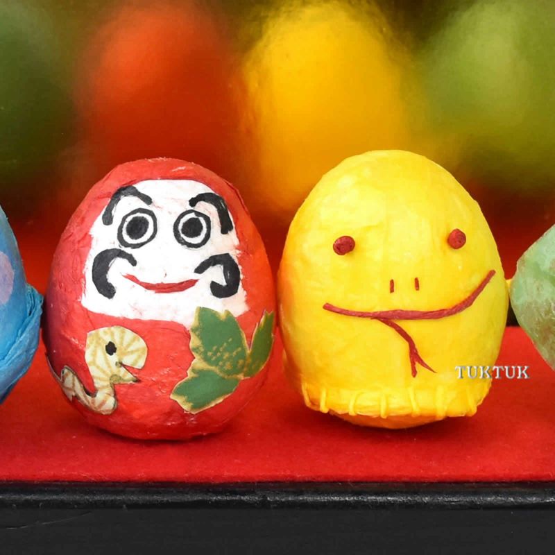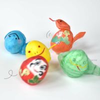※現在のお花紙は、10色入り(もも・赤・黄・オレンジ・緑・水・白・黒・銀・金)です。好きな色を選んで、自分だけのおきあがりこぼしを作ってくださいね!たまご型からへびを作るのは難しそうに見えますが、長めのしっぽを付ければ、ちゃんとへびに見えます。カラフルなだるまを作ってもかわいいですよ。
