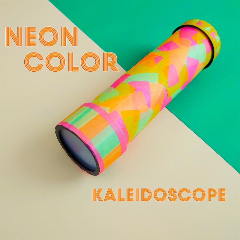 3枚の鏡と紙筒でかんたんに作れる万華鏡。キットにはマスキングテープと万華鏡の中身のパーツとしてセロファンやモール、おはじき、スパンコールが付いています。