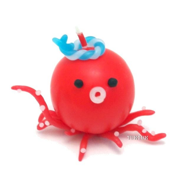 タコは足をバランスよくつけて、キャンドルが立つようにします。白いシートで足に吸盤をつけるのがポイントです。ねじりハチマキをつけたら、陽気なタコが出来上がります。