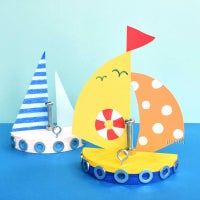 自由に色を塗って、好きなデザインの帆を作りましょう!ヨットの形がさわやかで、かわいいスマホスタンドになりますよ。