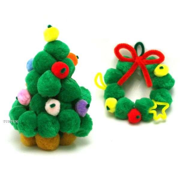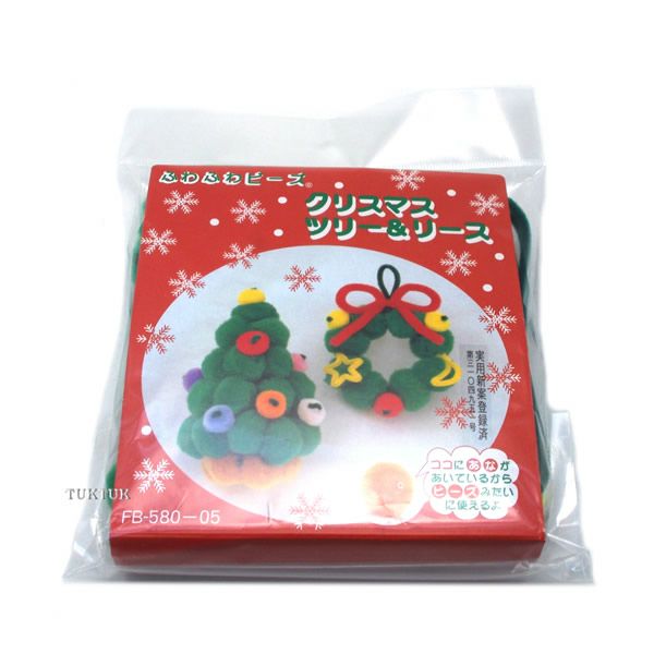 説明書に従って、順番にふわふわビーズを通すだけで、簡単に、かわいらしいクリスマスツリーとリースができます。ふわふわと冬らしく暖かい仕上がりで、クリスマスのお部屋の飾り付けにぴったりです。