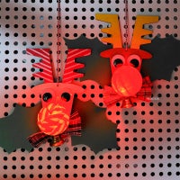 ボードに好きな色を塗ります。マスキングテープを貼ったカプセルとベルなどをモールでボードに留めます。目玉とヒイラギを付けて、ライトを入れれば完成です。