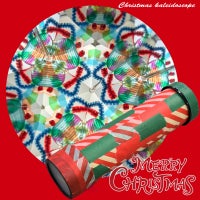 3枚の鏡と紙筒でかんたんに作れる万華鏡。キットには、クリスマスカラーのマスキングテープと万華鏡の中身のパーツとしてセロファンやモール、おはじき、ビーズが付いています。