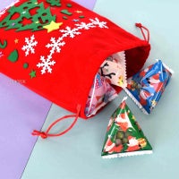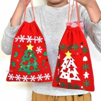 真っ赤なスエード調のきんちゃくを、クリスマスのお菓子入れにしましょう!